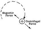 | By the laws of motion, any force can always be resolved into the sum of mutually perpendicularforces, each controlling the motion in its direction. The "radial force" perpendicular to the axis of the cone (drawing) keeps the ion or electron turning in a circle around that axis, and is balanced (as noted above) by the centrifugal force of that rotation.